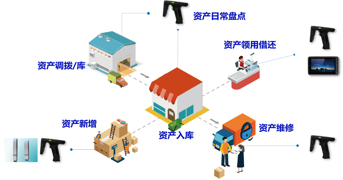 通過對固定資產使用RFID管理,主要用來管理固定資產全生命周期過程的使用管理,包括從資產的入庫、領用、借用及歸還、變更、轉移、調撥、報廢、維修等過程,用于企業進行固定資產的精細化管理,并提高固定資產的利用率;對資產采購、領用、退回、調撥、報廢審批流程進行嚴格控制;規范企業低值易耗品的采購、領用的過程,實現資產的全周期管控、各環節管理、資產責任到人、RFID盤點及賬實相符的管理目標